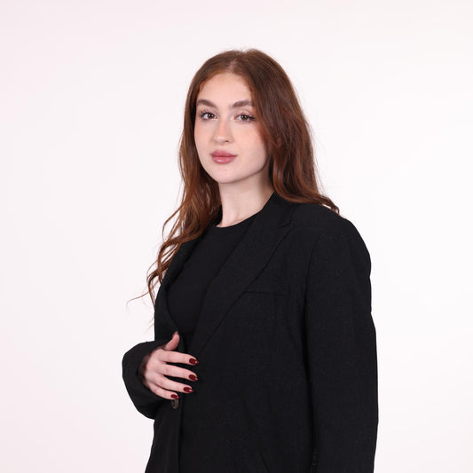 Classic Black Single-Breasted Blazer with Sparkly Fabric