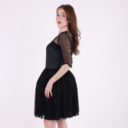 Black Sheer Striped Midi Dress with 3/4 Sleeves