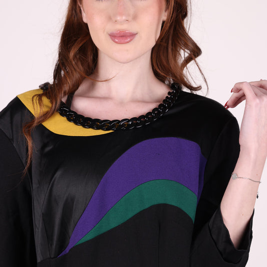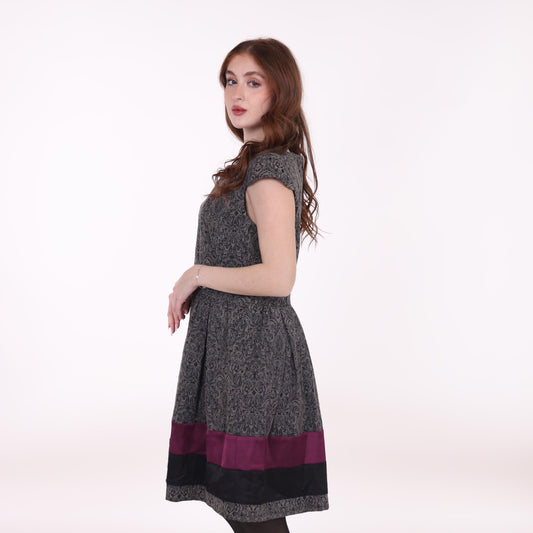 Jacquard Fit-and-Flare Dress with Colorblock Hem