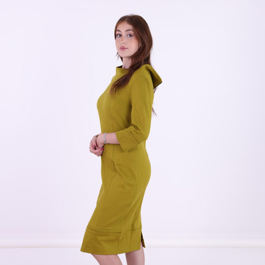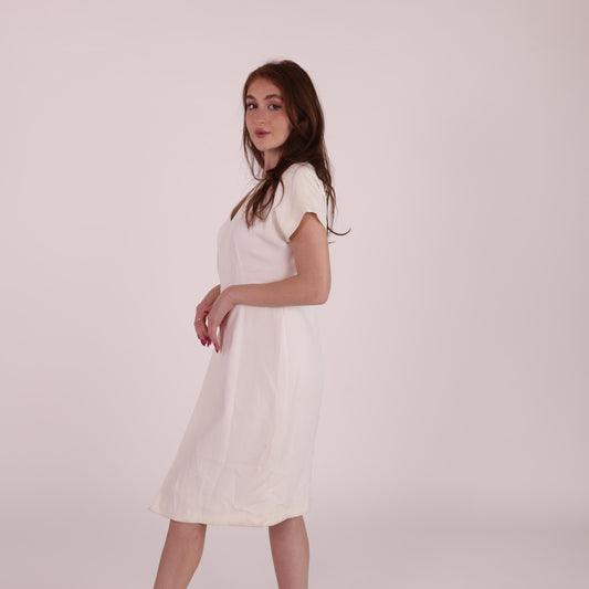 Structured Red Midi Dress with Side Pleats and Contrast Piping