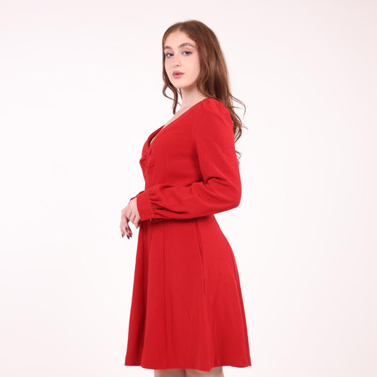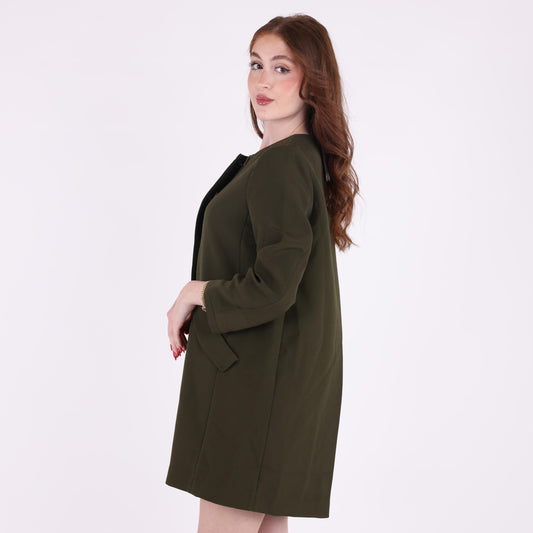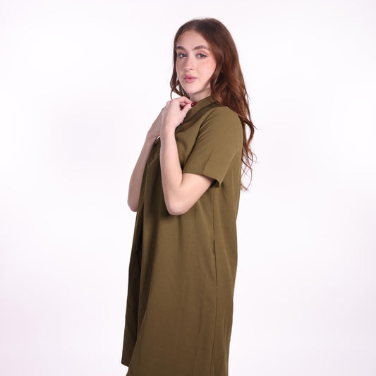 Olive Green Short-Sleeve Pleated Shirt Dress