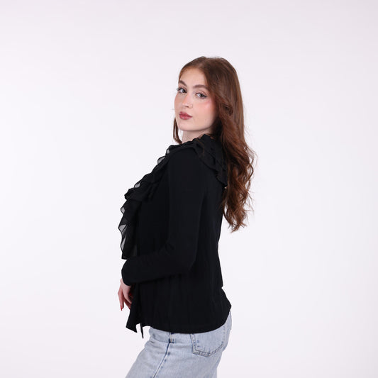 Black Ruffle Front Cardigan