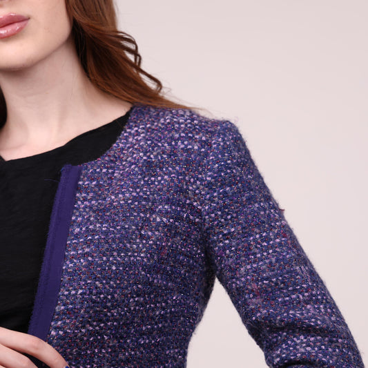 Textured Purple Tweed Cropped Jacket
