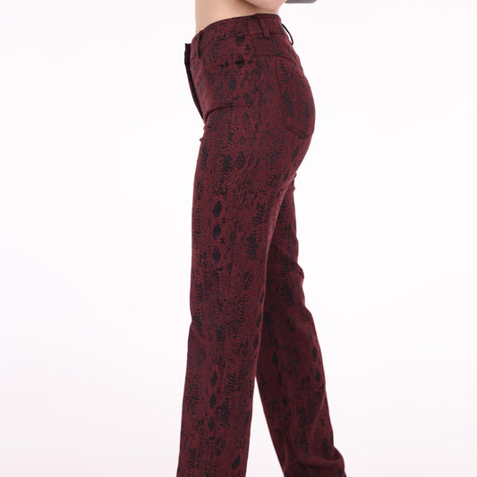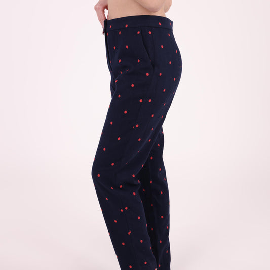 Navy Slim-Fit Pants with Red Polka Dot Pattern