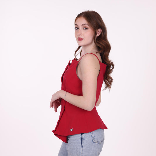Red Asymmetrical Spaghetti Strap Top with Layered Detail
