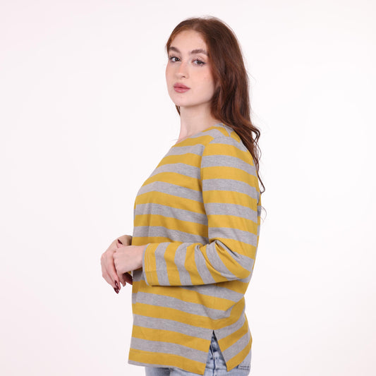 Black and Grey Abstract Print Long-Sleeve Blouse